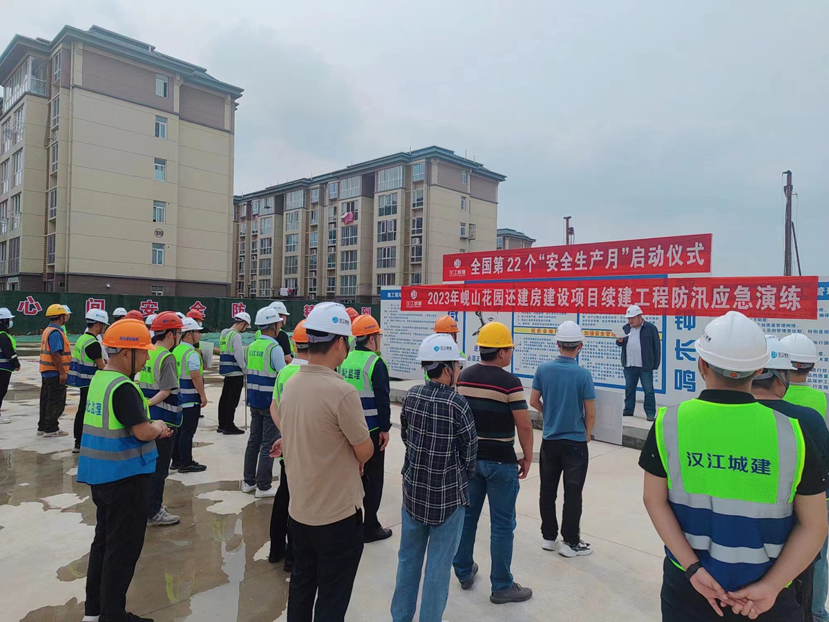 為貫徹落實(shí)“安全生產(chǎn)月——人人講安全、個(gè)個(gè)會(huì)應(yīng)急”的工作部署,進(jìn)一步強(qiáng)化防汛應(yīng)急處置能力。5月31日,漢江城建峴山花園還建房續(xù)建工程項(xiàng)目部組織開展“全國第22個(gè)安全生產(chǎn)月啟動(dòng)儀式暨峴山花園項(xiàng)目防汛應(yīng)急演練”活動(dòng)。