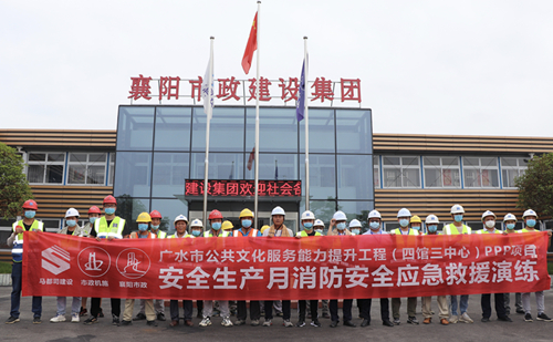 廣水公共文化服務(wù)能力提升工程“四館三中心”PPP項目由市政集團(tuán)及武漢市政工程機械化施工公司承建,項目建設(shè)內(nèi)容包括:科技館、文化館、圖書館、博物館、體育中心、學(xué)術(shù)報告中心、廣電傳媒中心。6月15日,市政集團(tuán)廣水公共文化服務(wù)能力提升工程(四館三中心)PPP項目舉行了消防安全應(yīng)急救援演練活動,襄陽市政聯(lián)合武漢市政全體項目部人員參加了演練活動。