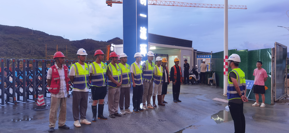現(xiàn)場工作人員分別對塔吊的穩(wěn)定、臨時用電、基坑排水等情況進(jìn)行了全面檢查。保證塔吊的平穩(wěn),電纜橋架的搭設(shè),如遇風(fēng)力過大提前切斷一切生產(chǎn)電源,做好基坑應(yīng)急排水措施。同時組織項(xiàng)目安全部及專業(yè)分包協(xié)作隊(duì)伍清運(yùn)施工現(xiàn)場的雜物、廢料,避免出現(xiàn)雜物廢料亂飛的情況,保護(hù)好海南的生態(tài)環(huán)境。項(xiàng)目綜合部籌措防汛防臺應(yīng)急物資,加強(qiáng)協(xié)作隊(duì)伍與項(xiàng)目部的溝通,如遇緊急情況,堅(jiān)持以生命安全為第一的原則。最后項(xiàng)目負(fù)責(zé)人帶隊(duì)親自檢查勞務(wù)人員生活區(qū),要求各協(xié)作隊(duì)伍提前準(zhǔn)備應(yīng)急避難場所,并在生活區(qū)地勢低洼部分加設(shè)抽水泵,避免出現(xiàn)積水。