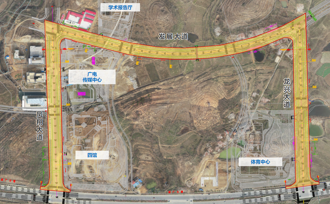 該項目位于湖北省廣水市馬都司村,是廣水市重大文體項目、重要民生工程“四館三中心”的配套道路,包含發(fā)展大道、鳳翔大道、龍興大道三條新建道路建設(shè),道路全長1610.26m,主要建設(shè)內(nèi)容包含道路工程、交通工程、排水工程、照明工程、綠化工程。目前片區(qū)內(nèi)主要場館基本建成,片區(qū)道路已投入使用,該項目建成后將成為“四館三中心”片區(qū)主要干道,極大地解決周邊市政配套設(shè)施缺乏、周邊單位出行不便的問題,對推動周邊地塊開發(fā),完善公共服務(wù)能力,促進區(qū)域經(jīng)濟發(fā)展有極為重要的作用。