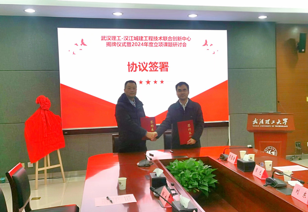 1月20日,武漢理工-漢江城建工程技術(shù)聯(lián)合創(chuàng)新中心在武漢理工大學(xué)舉行揭牌儀式。武漢理工大學(xué)科技合作與成果轉(zhuǎn)化中心主任胡劍、安全應(yīng)急學(xué)院院長趙開源、漢江城建黨委副書記、副董事長、總經(jīng)理蔡軍,副總經(jīng)理靖普及相關(guān)負(fù)責(zé)人和師生代表等出席揭牌儀式。
