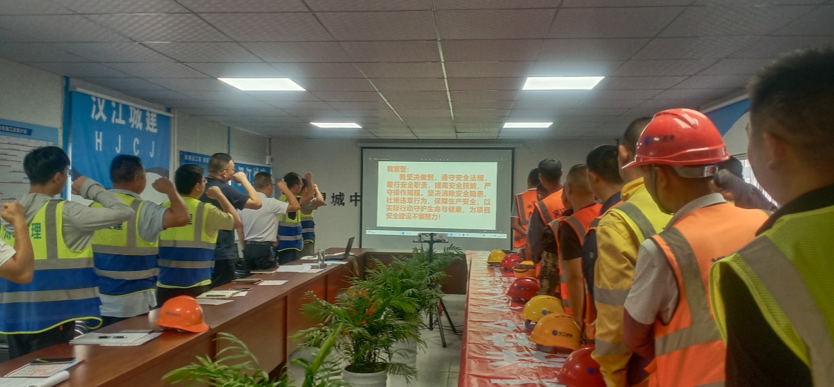 活動(dòng)現(xiàn)場(chǎng),市政公司代表向參會(huì)人員發(fā)放了“安全知識(shí)一卡通”,組織大家集中觀看“安全生產(chǎn)月”宣傳片及安全警示教育片。項(xiàng)目負(fù)責(zé)人傳達(dá)了漢江國(guó)投、漢江城建關(guān)于“安全生產(chǎn)月”活動(dòng)部署方案。項(xiàng)目部結(jié)合實(shí)際制訂了“安全生產(chǎn)月”活動(dòng)方案,從安全知識(shí)培訓(xùn)、隱患排查治理、應(yīng)急演練等多方面提升全體人員的安全意識(shí)和應(yīng)急處理能力。全體人員宣誓承諾,將在工作中嚴(yán)格遵守安全規(guī)章制度,堅(jiān)決杜絕安全事故發(fā)生。活動(dòng)結(jié)束后,參建單位代表向工友們發(fā)放夏季防暑降溫物品,囑咐大家做好高溫天氣應(yīng)對(duì)措施。