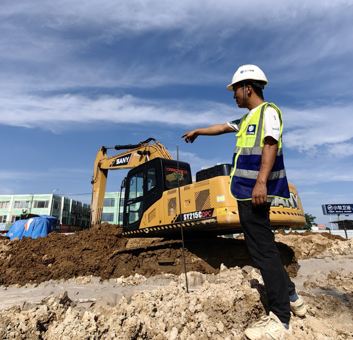 在建筑垃圾循環(huán)回收再利用項(xiàng)目現(xiàn)場,管理人員頭頂烈日,腳踏熱浪,井然有序地開展廠區(qū)道路及管網(wǎng)施工,全力以赴推動(dòng)工程建設(shè)。1號廠房東南側(cè)道路混凝土面層澆筑前,項(xiàng)目經(jīng)理行走在各個(gè)作業(yè)面,密切關(guān)注著施工進(jìn)度和質(zhì)量,嚴(yán)格把控每一道環(huán)節(jié)。高溫天氣,混凝土罐車出料更要注意坍落度,每次開盤,管理人員既憑數(shù)據(jù),也憑經(jīng)驗(yàn)對每車混凝土進(jìn)行把關(guān),直到面層收光完成后及時(shí)安排養(yǎng)護(hù)覆蓋。