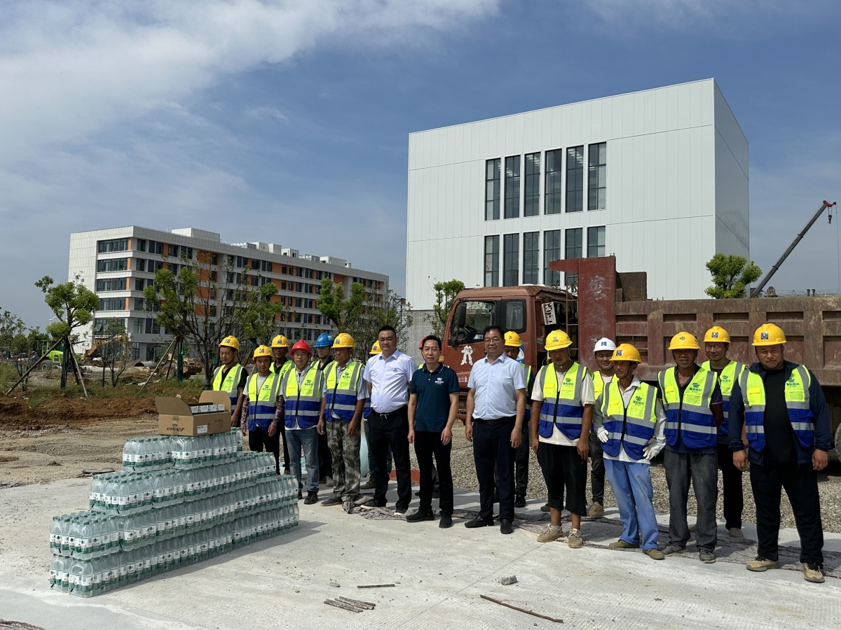 上午10點,國創(chuàng)公司班子成員到達項目工地現(xiàn)場,向辛勤工作的工人們送去了礦泉水、藿香正氣水、十滴水等防暑降溫物資,并叮囑大家在高溫天氣下注意防暑,確保身體健康。