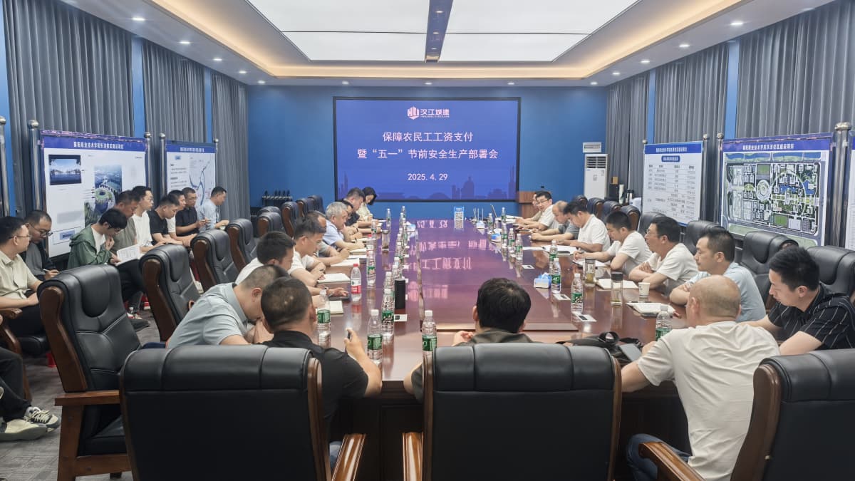 為切實(shí)保障農(nóng)民工工資支付,加強(qiáng)當(dāng)前和“五一”期間安全防范工作,4月29日晚,漢江城建召開保障農(nóng)民工工資支付暨“五一”節(jié)前安全生產(chǎn)專題部署會。集團(tuán)副總經(jīng)理余海昌主持會議并就具體工作作出安排部署,各分(子)公司負(fù)責(zé)人及在建項(xiàng)目項(xiàng)目經(jīng)理參加會議。