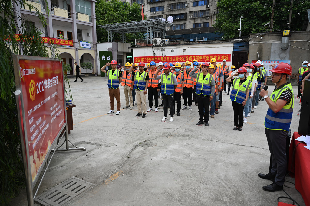 啟動(dòng)儀式上,漢江城建質(zhì)安環(huán)保部部長(zhǎng)吳斌宣讀了《漢江城建集團(tuán)有限公司2021年“安全生產(chǎn)月”活動(dòng)方案》,接著全體人員進(jìn)行安全宣誓并在安全生產(chǎn)月主題背景墻上簽字。漢江城建旨在以“安全生產(chǎn)月”活動(dòng)為鍥機(jī),防范各類(lèi)事故為目的,通過(guò)開(kāi)展各類(lèi)安全活動(dòng),不斷增強(qiáng)員工的安全意識(shí)和操作技能使安全理念深入人心。儀式最后,在項(xiàng)目部進(jìn)行燃?xì)庑孤⿷?yīng)急演練活動(dòng),通過(guò)開(kāi)展安全生產(chǎn)應(yīng)急救援演練,進(jìn)一步營(yíng)造“人人懂安全,人人管安全”的氛圍。