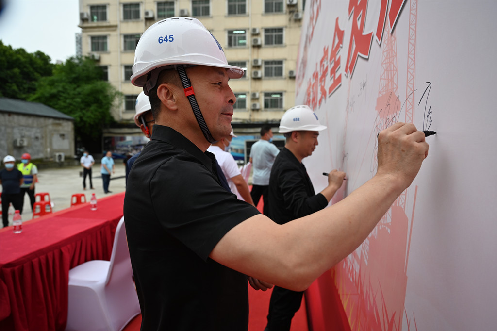 為進(jìn)一步強(qiáng)化各項(xiàng)預(yù)防措施、落實(shí)安全生產(chǎn)主體責(zé)任、有效防范和堅(jiān)決遏制重特大事故、進(jìn)一步提升安全生產(chǎn)總體水平,6月3日上午,漢江城建長(zhǎng)征路立面改造綜合整治工程項(xiàng)目部舉行2021年“安全生產(chǎn)月”啟動(dòng)儀式,現(xiàn)場(chǎng)有近百人參加。公司黨委委員、董事謝鋒做動(dòng)員講話,質(zhì)量安全環(huán)保部部長(zhǎng)吳斌主持此次儀式,黨委副書(shū)記、董事姚總,黨委委員、紀(jì)委書(shū)記曹晶晶出席啟動(dòng)儀式。