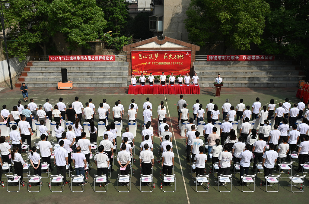 為進(jìn)一步加強(qiáng)青年員工隊(duì)伍建設(shè),增強(qiáng)新員工對企業(yè)的認(rèn)同感和歸屬感,更好地延續(xù)公司導(dǎo)師帶徒“老帶新+傳幫帶”的傳統(tǒng)。6月11日,漢江城建舉辦2021年“導(dǎo)師帶徒”拜師儀式活動(dòng),公司各部室、各分(子)公司師徒代表150余人參與此次儀式。