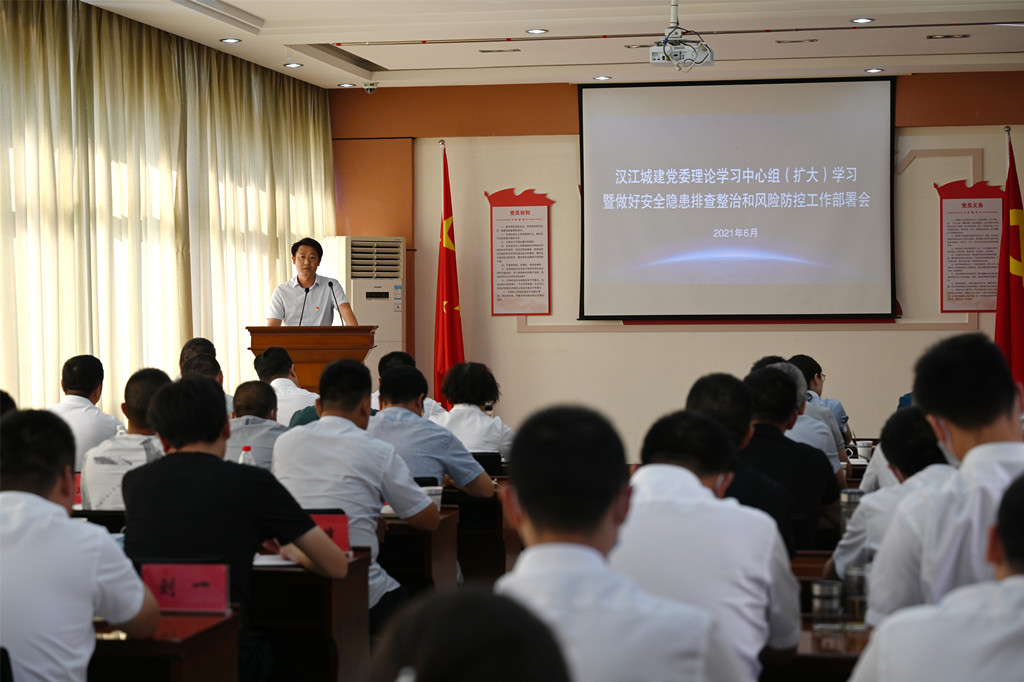 為貫徹落實中央、省、市及漢江國投安全生產(chǎn)工作會會議精神,6月22日下午,漢江城建召開黨委理論學習中心組(擴大)學習暨做好安全隱患排查整治和風險防控工作部署會。公司黨委領導班子成員、公司本部中層干部、各分(子)公司主要負責人及在建項目項目經(jīng)理等人參會。
