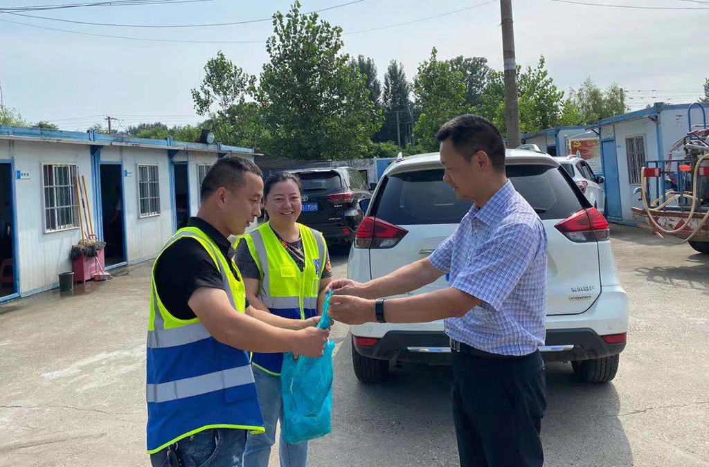 近日,高溫酷暑天氣持續(xù)不減,為進(jìn)一步關(guān)心廣大一線職工的生命安全和身體健康,有效預(yù)防高溫中暑和各類事故發(fā)生,7月28 日,漢江城建黨委書記、董事長盧國宏、黨委副書記、副董事長、總經(jīng)理蔡軍等公司領(lǐng)導(dǎo)分別組成7隊慰問組深入基層生產(chǎn)單位和工程項目施工現(xiàn)場,慰問奮戰(zhàn)在一線的職工,為大家送上防暑降溫物品。