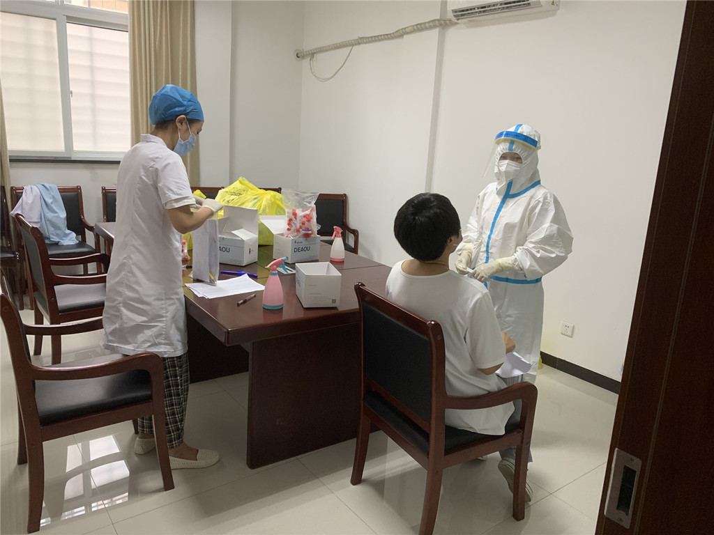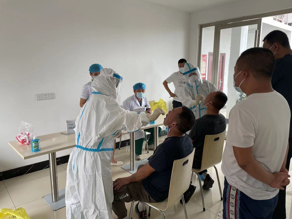 檢測采樣現(xiàn)場,工作人員井然有序地組織分組排序、信息采集、掃碼登記及樣本采集,各個(gè)環(huán)節(jié)配合密切、銜接有序,最大限度地提高檢測工作效率。為有效緩解核酸檢測工作人員不足的壓力,各部門、各分(子)公司志愿者奔赴核酸檢測一線,在露天場地冒著酷暑,幫助勞務(wù)人員手動錄入信息,以實(shí)際行動詮釋國企員工的責(zé)任擔(dān)當(dāng)。經(jīng)過大家的共同努力,共完成約1000多名員工核酸檢測。次日,經(jīng)醫(yī)務(wù)人員檢測顯示,結(jié)果全部為陰性。