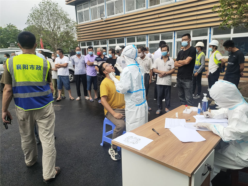8月11日,漢江城建分別在機(jī)關(guān)辦公樓、各分(子)公司、各項(xiàng)目部設(shè)置檢測點(diǎn),組織各部室、各分(子)公司員工、各項(xiàng)目部員工、勞務(wù)人員以及合作隊(duì)伍等進(jìn)行新冠病毒核酸檢測。在嚴(yán)密組織下,各檢測點(diǎn)嚴(yán)格按照檢測要求提前布置場地,消毒清潔現(xiàn)場,保持通風(fēng)換氣,嚴(yán)控車輛出入管理,全方位保障員工健康防護(hù)和生命安全。