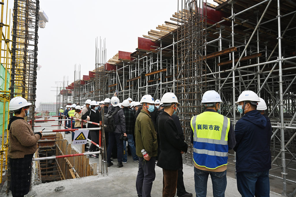 11月5日,漢江城建承建的湖北省鄂西北(襄陽)重大疫情救治基地項目部組織了安全文明施工和承插型盤扣式鋼管腳手架實際應用觀摩會,市安監(jiān)站站長吳克濤及周邊各縣市區(qū)安監(jiān)站工作人員、安全監(jiān)督員參加了此次活動。