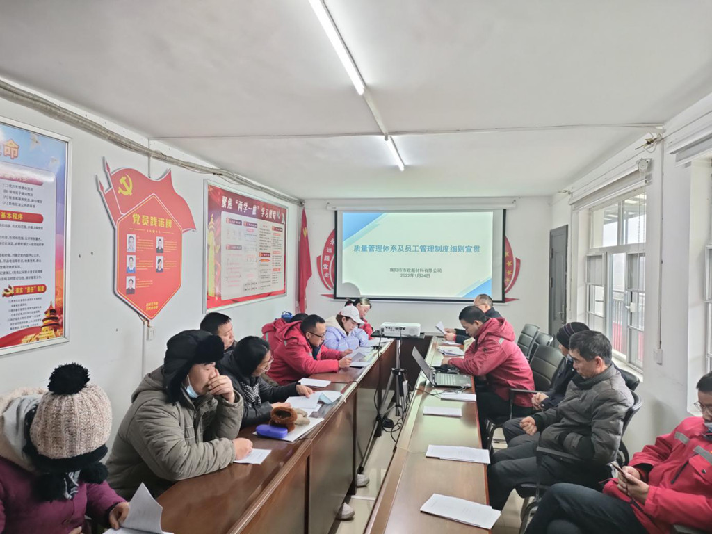 為建立長效管理機(jī)制,健全和完善內(nèi)控管理制度,規(guī)范各級、各類人員的工作標(biāo)準(zhǔn),明確崗位職責(zé),提高工作質(zhì)量和效率,增強(qiáng)公司活力,調(diào)動(dòng)員工的工作積極性,新材料公司于1月24日,組織全體員工召開了“質(zhì)量管理體系及員工管理制度細(xì)則”宣貫會,并同時(shí)開展了新材料公司員工內(nèi)部年終互評考核。會議由新材料公司書記孔慶銳主持,新材料公司全體員工參加。