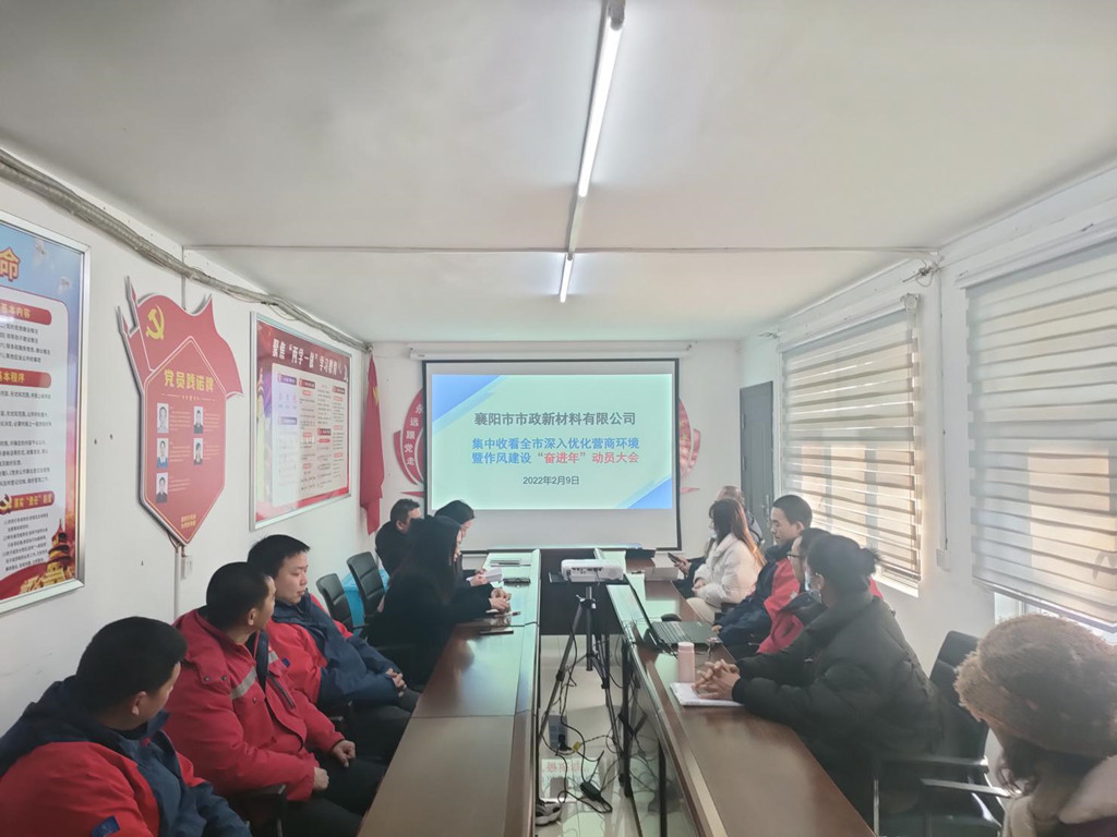 為進(jìn)一步提升員工的工作作風(fēng),優(yōu)化服務(wù)水平,營造良好的營商環(huán)境,2月9日上午,新材料公司組織全體員工,集中在會(huì)議室觀看學(xué)習(xí)全市深入優(yōu)化營商環(huán)境暨作風(fēng)建設(shè)“奮進(jìn)年”動(dòng)員大會(huì),會(huì)后在新材料公司經(jīng)理馬龍的主持下,又及時(shí)召開了新材料公司全體職工的收心會(huì)與動(dòng)員會(huì)。