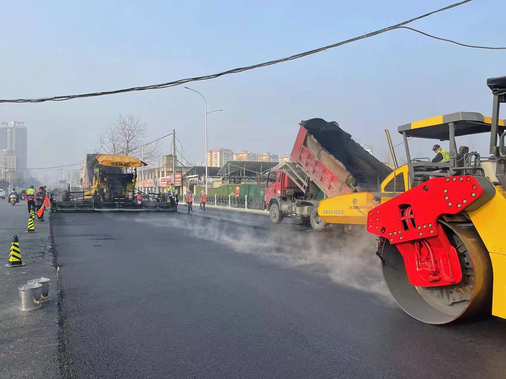 自瀝青攤鋪工作實施以來,第三分公司嚴格按照標準化施工要求,全體參建人員抓重點、克難點、保節(jié)點,搶抓有效工期,在保質(zhì)保量保安全的前提下,以最快的速度為周邊市民改善出行環(huán)境。