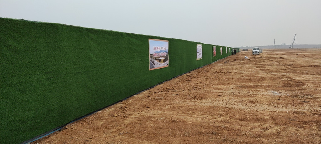 在收到圍擋安裝任務后,交安公司迅速組織人員機械趕往施工現(xiàn)場,在12小時內完成了600米的圍擋安裝、仿真草皮鋪設及創(chuàng)文宣傳工程。在保證安全和質量的前提下,跑出交安公司“加速度”,為比亞迪產業(yè)園項目開工儀式順利進行提供了重要保障。