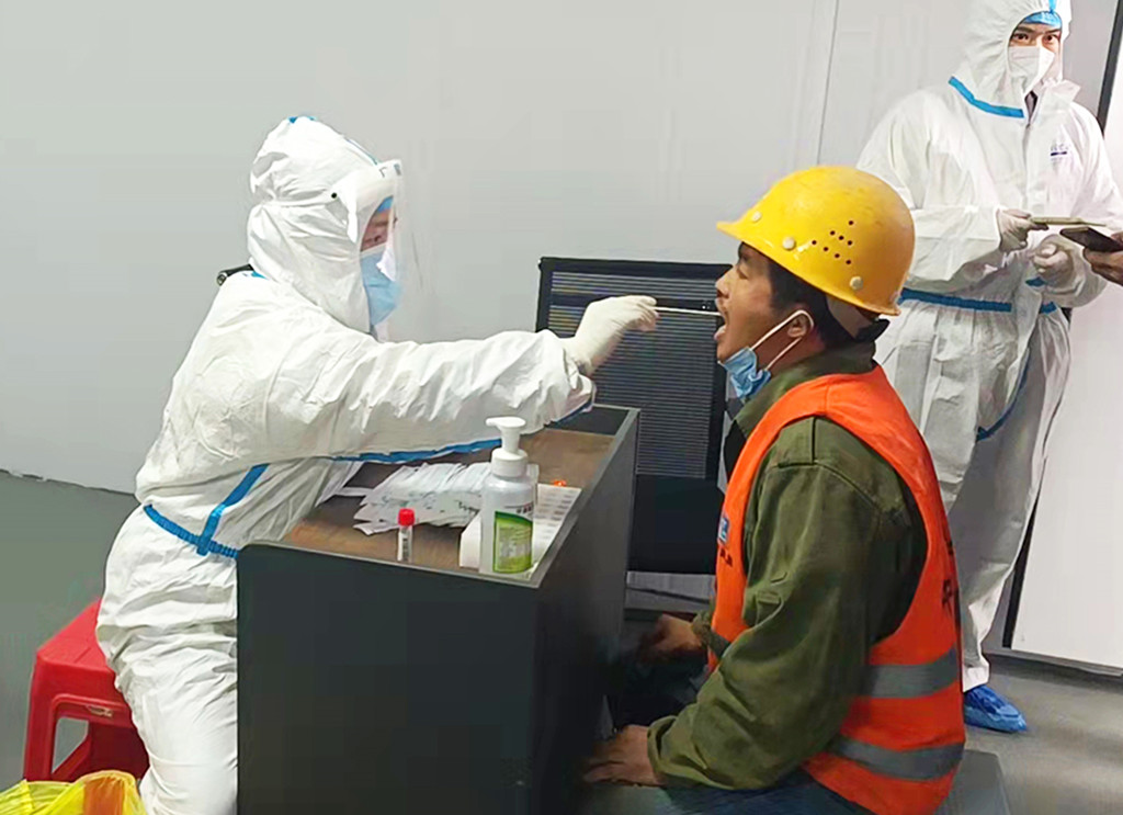 為更加全面、高效地做好疫情防控工作,3月17日,襄陽市兒童醫(yī)院項目部組織全員開展核酸檢測工作。為保障檢測有序快速地進行,縮短工友等候的時間,項目管理人員紛紛加入到核酸檢測志愿服務(wù)中,組織工友佩戴口罩、間隔1米、有序排隊,在大家通力合作下,僅3小時就已完成1000余人次的檢測任務(wù)。
