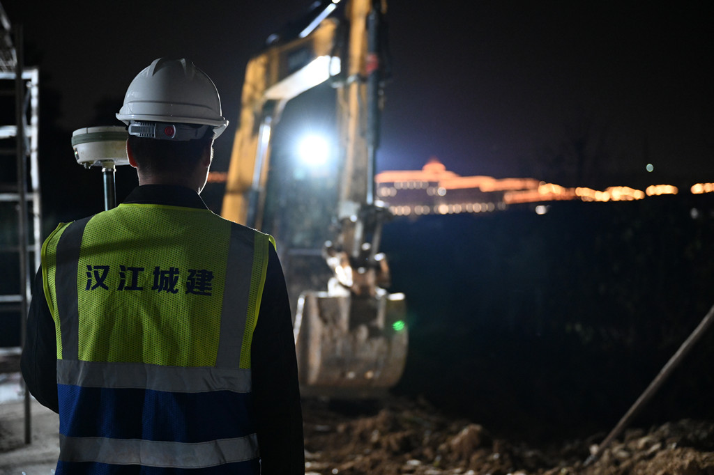 夕陽西下,暮色降臨,凌晨兩點(diǎn)的青龍村一片寧靜…但襄水源施工現(xiàn)場卻燈火通明,漢江城建工人們忙碌的身影在園區(qū)中來回穿梭,呈現(xiàn)一派繁忙的施工景象。正值人間四月天,也正是工程施工的黃金季節(jié),漢江城建襄水源項(xiàng)目部緊緊抓住這一有利時(shí)機(jī),白天搶著干,晚上挑燈干,晝夜奮戰(zhàn)搶工期,全力以赴保進(jìn)度,以實(shí)際行動(dòng)踐行國企擔(dān)當(dāng),力爭早日完成襄水源景區(qū)建設(shè)任務(wù)。