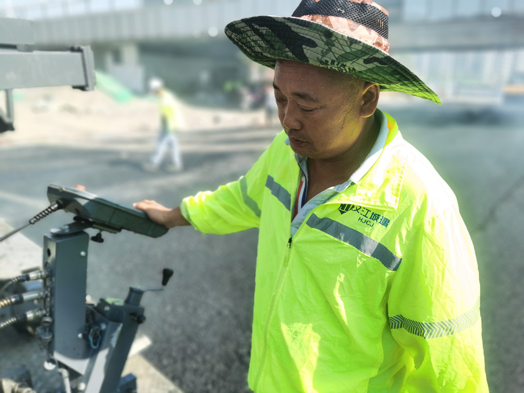 高溫天氣下,瀝青攤鋪施工現(xiàn)場更是酷熱難耐。8月12日,在丹江路(長征路—魚梁洲大橋)改造工程施工現(xiàn)場,攤鋪機(jī)緩緩前行,壓路機(jī)隨后跟上往返碾壓路面,此時(shí)瀝青表面溫度已經(jīng)達(dá)到140℃以上,漢江城建第三分公司一線工作者們正經(jīng)受著烈日和高溫瀝青的雙重“烤驗(yàn)”。