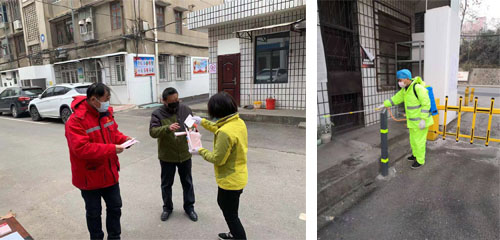 春節(jié)期間一公司在職員工一面承擔(dān)著各自施工在建項(xiàng)目的春節(jié)值班任務(wù);一面承擔(dān)著建華路家屬院疫情防控包保任務(wù);同時(shí),一公司黨員同志在各屬社區(qū)的“雙報(bào)到”工作中承擔(dān)著社區(qū)黨組織分配的疫情防控任務(wù),截至2月2日,一公司黨員同志參與社區(qū)防疫工作達(dá)31人次,工作內(nèi)容包括在社區(qū)管轄范圍內(nèi)進(jìn)行疫情防控知識(shí)宣傳、在各交通要道及防控點(diǎn)值守、向市民發(fā)放免費(fèi)口罩、逐戶摸排社區(qū)各類人員、電話回訪返襄人員、對(duì)社區(qū)環(huán)境進(jìn)行消毒整治、張貼通告、宣傳標(biāo)語(yǔ)等。