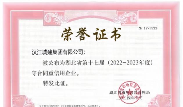 喜訊!漢江城建及旗下子公司被評(píng)為湖北省第十七屆“守合同重信用”企業(yè)