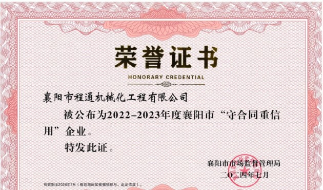 喜訊!程通機械化公司憑借其在市場經(jīng)營中的卓越表現(xiàn)和對合同精神的嚴(yán)格遵守,榮獲了由襄陽市市場監(jiān)督管理局頒發(fā)的襄陽市2022&mda