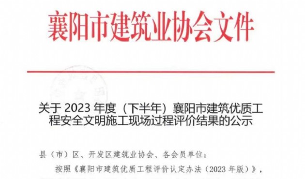 近日,襄陽(yáng)市建筑業(yè)協(xié)會(huì)表彰通報(bào)了2023年度襄陽(yáng)市建筑工程“隆中杯”獎(jiǎng)(市優(yōu)質(zhì)工程)評(píng)價(jià)結(jié)果,其中,漢江城建承建的