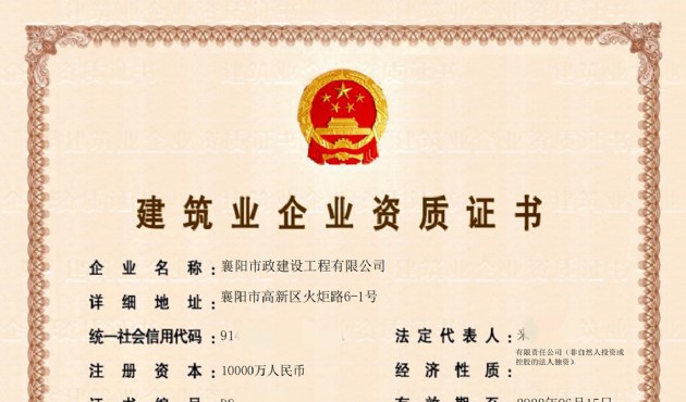 6月19日,經(jīng)湖北省住房和城鄉(xiāng)建設廳核準,市政公司申報的建筑工程施工總承包貳級、市政公用工程施工總承包貳級、隧道工程專業(yè)承包