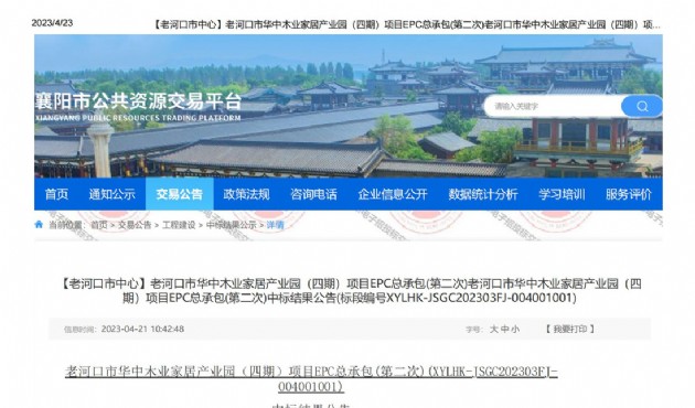 喜訊!漢江城建中標老河口市華中木業(yè) 家居產(chǎn)業(yè)園(四期)項目EPC總承包項目