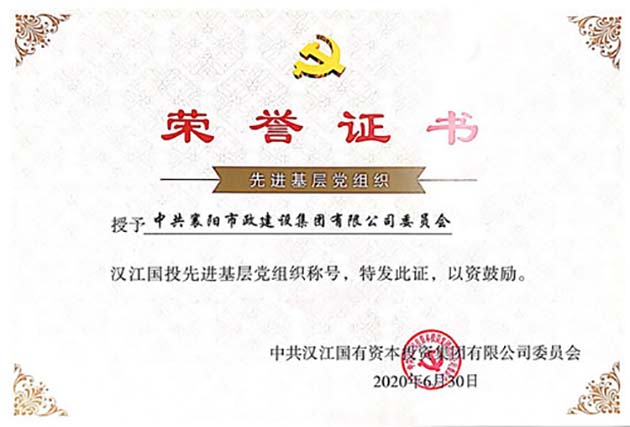 中共襄陽市政建設集團有限公司委員會被中共漢江國有資本投資集團有限公司委員會授予“先進基層黨組織”榮譽稱號。