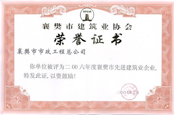 2006年襄樊市先進建筑業(yè)企業(yè)