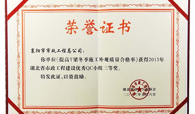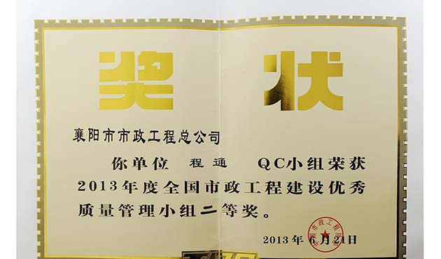 2013全國市政質(zhì)量管理小組二等獎(jiǎng)