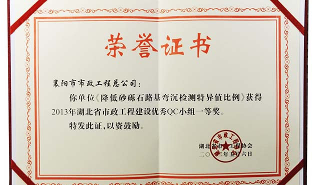 2015襄樊大道環(huán)城東路綜合整理湖北省示范工程金獎(jiǎng)