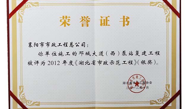 2012鄧城大道工程湖北省市政示范工程銀獎(jiǎng)