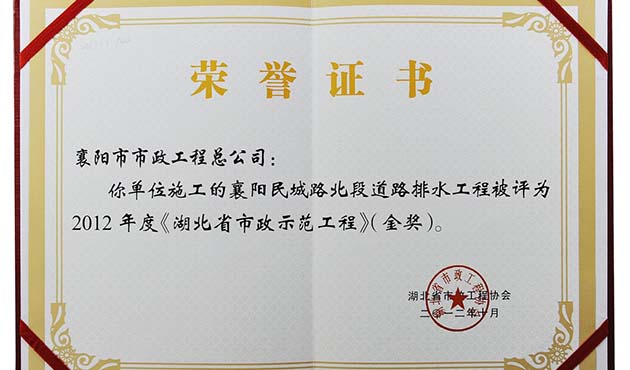 2012民城路工程湖北省市政示范工程金獎(jiǎng)