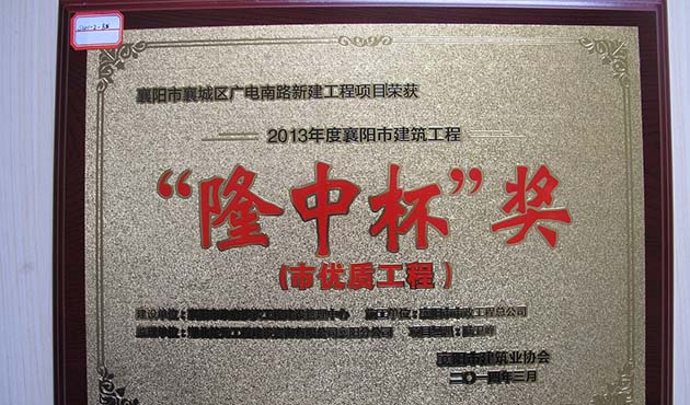 2012樊宛路工程襄陽市“隆中杯”獎(jiǎng)杯