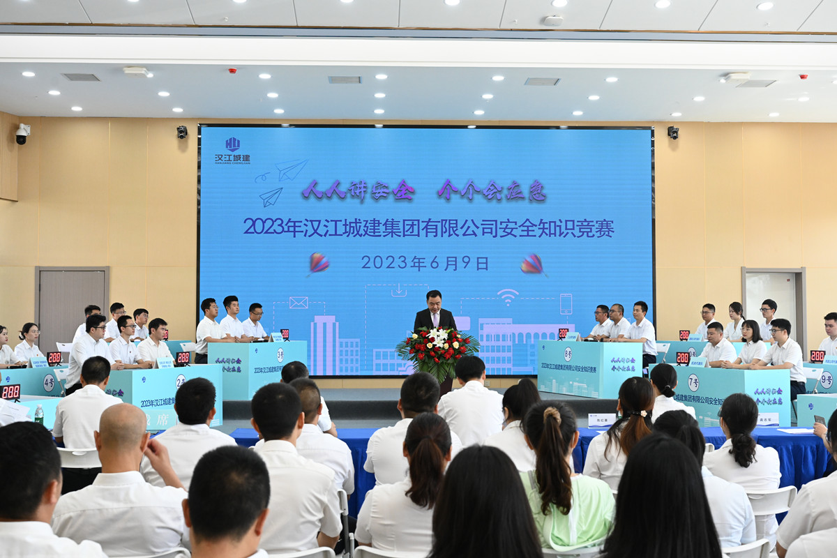 為進(jìn)一步營(yíng)造“全國(guó)安全生產(chǎn)月”活動(dòng)氛圍,培養(yǎng)干部職工安全生產(chǎn)知識(shí)學(xué)習(xí)意識(shí),掀起學(xué)習(xí)安全生產(chǎn)知識(shí)熱潮。6月9日上午,漢江城建組織開展“人人講安全,個(gè)個(gè)會(huì)應(yīng)急”主題知識(shí)競(jìng)賽活動(dòng),漢江城建黨委書記、董事長(zhǎng)盧國(guó)宏,出席活動(dòng)并發(fā)表講話。漢江城建黨委班子成員,機(jī)關(guān)部室、分(子)公司負(fù)責(zé)人,在建項(xiàng)目項(xiàng)目經(jīng)理及員工代表等100余人參加本次活動(dòng)。