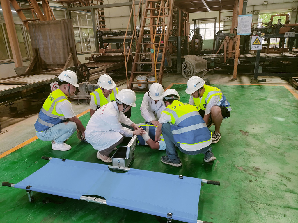 此次演練采用場(chǎng)景設(shè)置、實(shí)戰(zhàn)參演等方式進(jìn)行。演練現(xiàn)場(chǎng)設(shè)在新材料公司制磚車間,模擬在設(shè)備維修過(guò)程中,現(xiàn)場(chǎng)作業(yè)人員不慎從平臺(tái)墜落。“不好啦,有人掉下來(lái)了!”隨著一聲高呼,應(yīng)急演練拉開(kāi)序幕。在高空墜落事故發(fā)生后,現(xiàn)場(chǎng)安全管理人員聽(tīng)到呼救后,迅速查看傷者情況,同時(shí)打電話報(bào)告經(jīng)理,得到請(qǐng)示后,立即啟動(dòng)了《高空墜落事故應(yīng)急救援預(yù)案》,同時(shí)向120請(qǐng)求救援。在應(yīng)急預(yù)案領(lǐng)導(dǎo)小組組長(zhǎng)統(tǒng)一指揮下,協(xié)調(diào)組織應(yīng)急救援組、警戒保衛(wèi)組、醫(yī)療救援組、通訊聯(lián)絡(luò)組齊奔現(xiàn)場(chǎng),各組各司其職,演練現(xiàn)場(chǎng)井然有序、配合緊密,最后應(yīng)急救援車輛和醫(yī)療人員將傷員送往醫(yī)院,保證了傷者第一時(shí)間得到正確、有效救治,消除了事故影響,及時(shí)恢復(fù)了生產(chǎn)。演練結(jié)束后,還及時(shí)組織相關(guān)人員召開(kāi)了總結(jié)會(huì)。