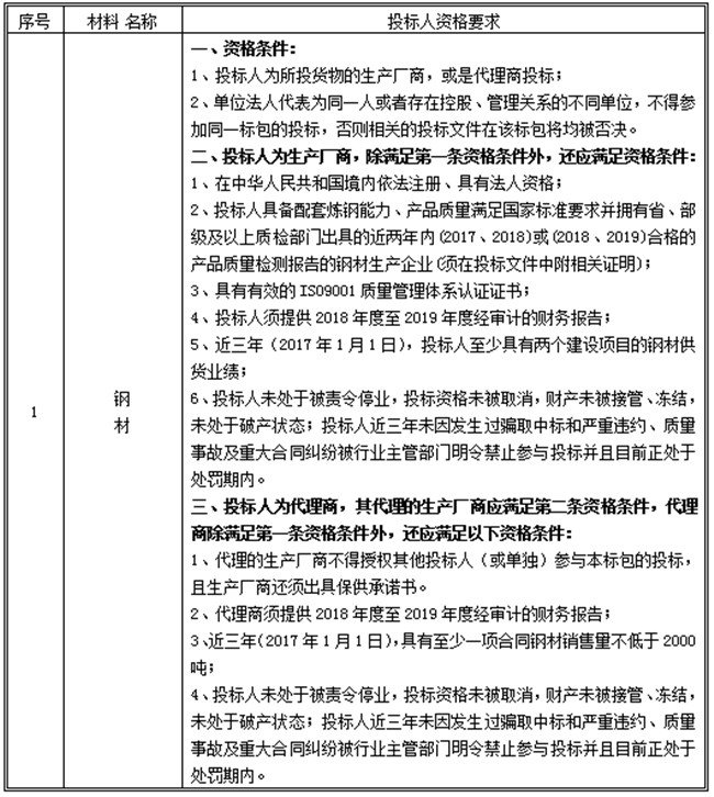 本次招標內容為:鋼材,標包劃分情況、擬招標數量、交貨地點及供貨期詳見下表: