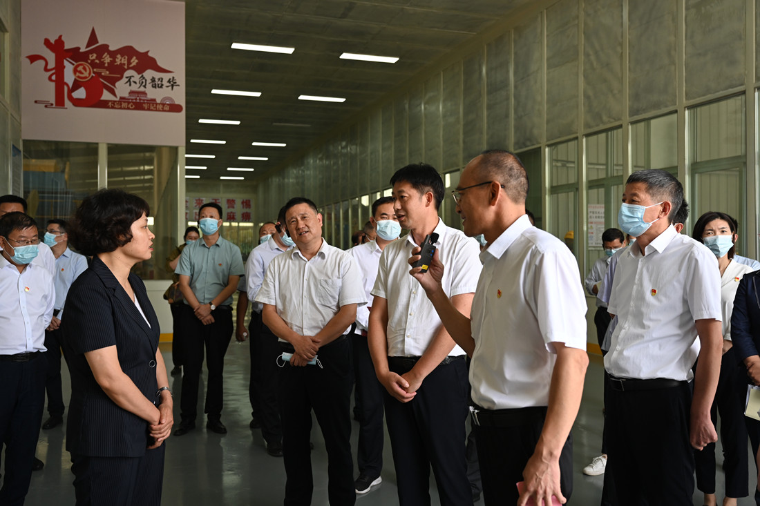 9月21日下午,市委組織部副部長(zhǎng)、市委老干部局局長(zhǎng),市委兩新工委書(shū)記劉寶霞帶領(lǐng)全市國(guó)有企業(yè)觀摩團(tuán)一行40余人,來(lái)到漢江城建“黨建示范點(diǎn)”新材料公司進(jìn)行現(xiàn)場(chǎng)觀摩,漢江國(guó)投黨委副書(shū)記、董事黃開(kāi)均陪同觀摩。在新材料公司循環(huán)再利用車間前,漢江城建集團(tuán)黨委書(shū)記、董事長(zhǎng)盧國(guó)宏為觀摩團(tuán)講解和匯報(bào)了集團(tuán)黨建工作情況。近年來(lái),漢江城建黨委聚焦黨建引領(lǐng),堅(jiān)持“特色、創(chuàng)新、精品”的黨建思路,深入開(kāi)展黨建示范點(diǎn)創(chuàng)建、“紅旗黨支部”創(chuàng)建等活動(dòng),構(gòu)筑一個(gè)項(xiàng)目一個(gè)基地、一個(gè)支部一個(gè)堡壘、一個(gè)黨員一面旗幟的“三個(gè)一”特色黨建品牌格局,以高質(zhì)量黨建推動(dòng)企業(yè)高質(zhì)量發(fā)展。新材料公司黨支部書(shū)記孔慶銳圍繞推進(jìn)支部“五個(gè)標(biāo)準(zhǔn)化”建設(shè),找準(zhǔn)黨建與生產(chǎn)的“結(jié)合點(diǎn)”,開(kāi)展“黨建+節(jié)能減排”、“黨建+安全生產(chǎn)”、“黨建+產(chǎn)品研發(fā)”等工作情況進(jìn)行了詳細(xì)匯報(bào),為大家介紹了新材料公司充分發(fā)揮黨員示范引領(lǐng)的作用,開(kāi)展黨員一線“亮身份”、“亮承諾”系列活動(dòng)的相關(guān)做法。就如何堅(jiān)持黨建引領(lǐng)綠色發(fā)展,將黨建“紅色力量”轉(zhuǎn)化為生態(tài)保護(hù)發(fā)展“綠色引擎”,推動(dòng)黨建工作與業(yè)務(wù)工作齊頭并進(jìn)的工作情況與大家進(jìn)行了交流。
