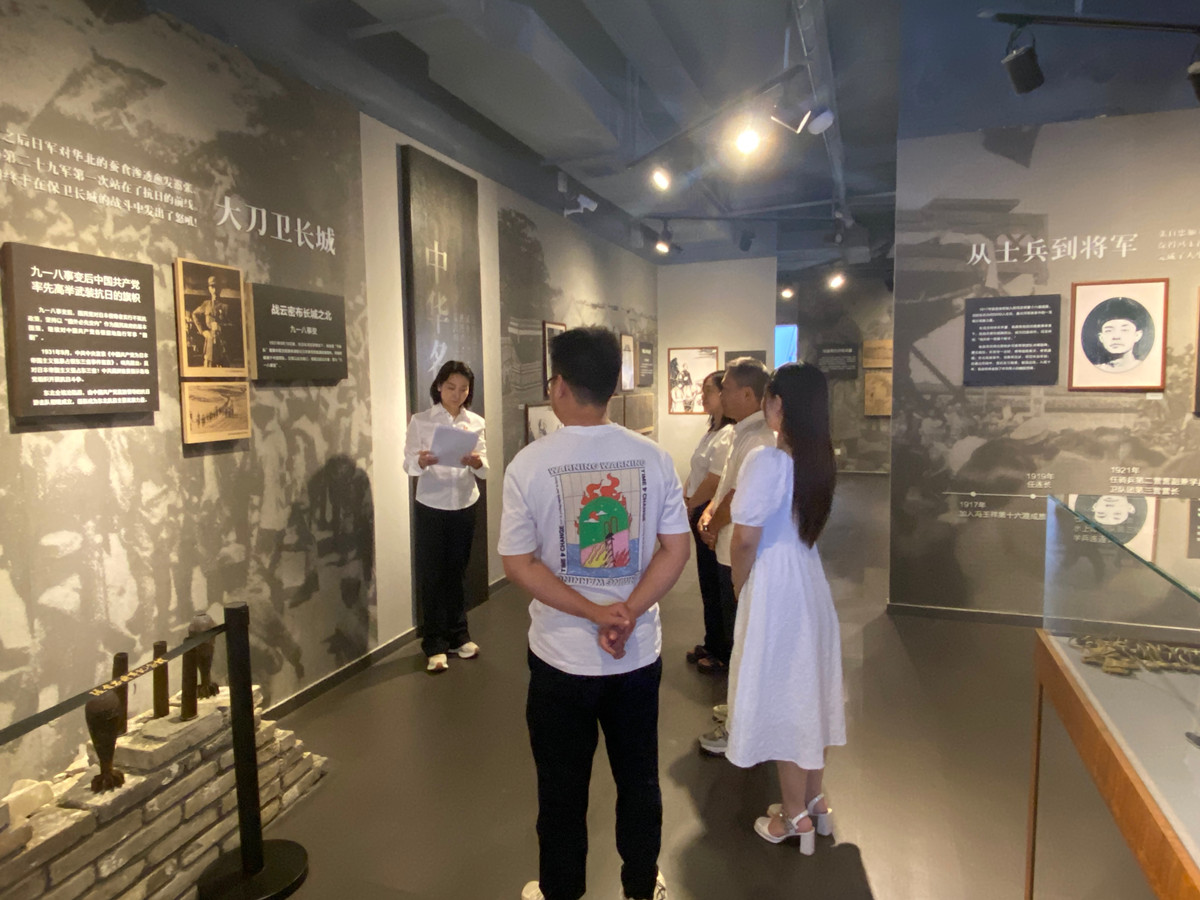 緬懷,是為了更加堅定地銘記,銘記是為了更加義無反顧的前行。在張自忠將軍紀念館,黨員同志們懷著崇敬的心情走進展廳,駐足觀看驚心動魄的抗戰(zhàn)革命歷程,了解黨的光輝歷史,從一幅幅歷史照片、一件件歷史文物中,追憶革命先烈的生平事跡,感受其偉大的人格魅力和堅定的革命信仰。在展館內(nèi)的歷史文獻資料前,黨支部書記崔海玲同志以“繼往開來奮進程,踔厲奮發(fā)展現(xiàn)新作為”為題,為全體黨員現(xiàn)場講授了學習貫徹黨的二十大精神專題黨課。在場黨員暢談自己將如何在實際工作中學習貫徹黨的二十大精神。崔海玲同志做總結(jié)發(fā)言:全體黨員都應該踐行黨的宗旨,不忘初心、牢記使命,立足崗位職責擔當作為,以實際行動學習貫徹好黨的二十大精神。
