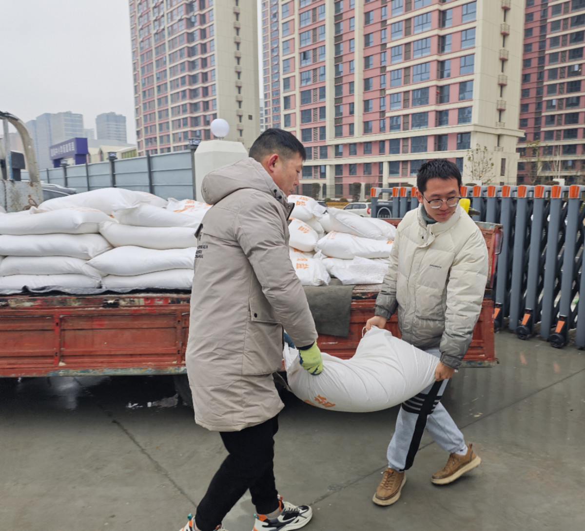 交安公司黨支部迅速響應(yīng)“以雪為令、聞雪而動(dòng)”,緊急調(diào)配工業(yè)鹽等融雪物資,由黨支部書記崔海玲同志親自帶領(lǐng)黨員突擊隊(duì)充分發(fā)揮黨員先鋒模范作用,及時(shí)搬運(yùn)物資,按需求第一時(shí)間將物資送到了項(xiàng)目施工現(xiàn)場(chǎng),這批物資將用于加快融雪的速度,有效緩解因屋頂積雪導(dǎo)致荷載過大的現(xiàn)象及場(chǎng)地結(jié)冰打滑而產(chǎn)生的安全隱患,保障項(xiàng)目施工現(xiàn)場(chǎng)材料生產(chǎn)運(yùn)輸車輛順利通行。