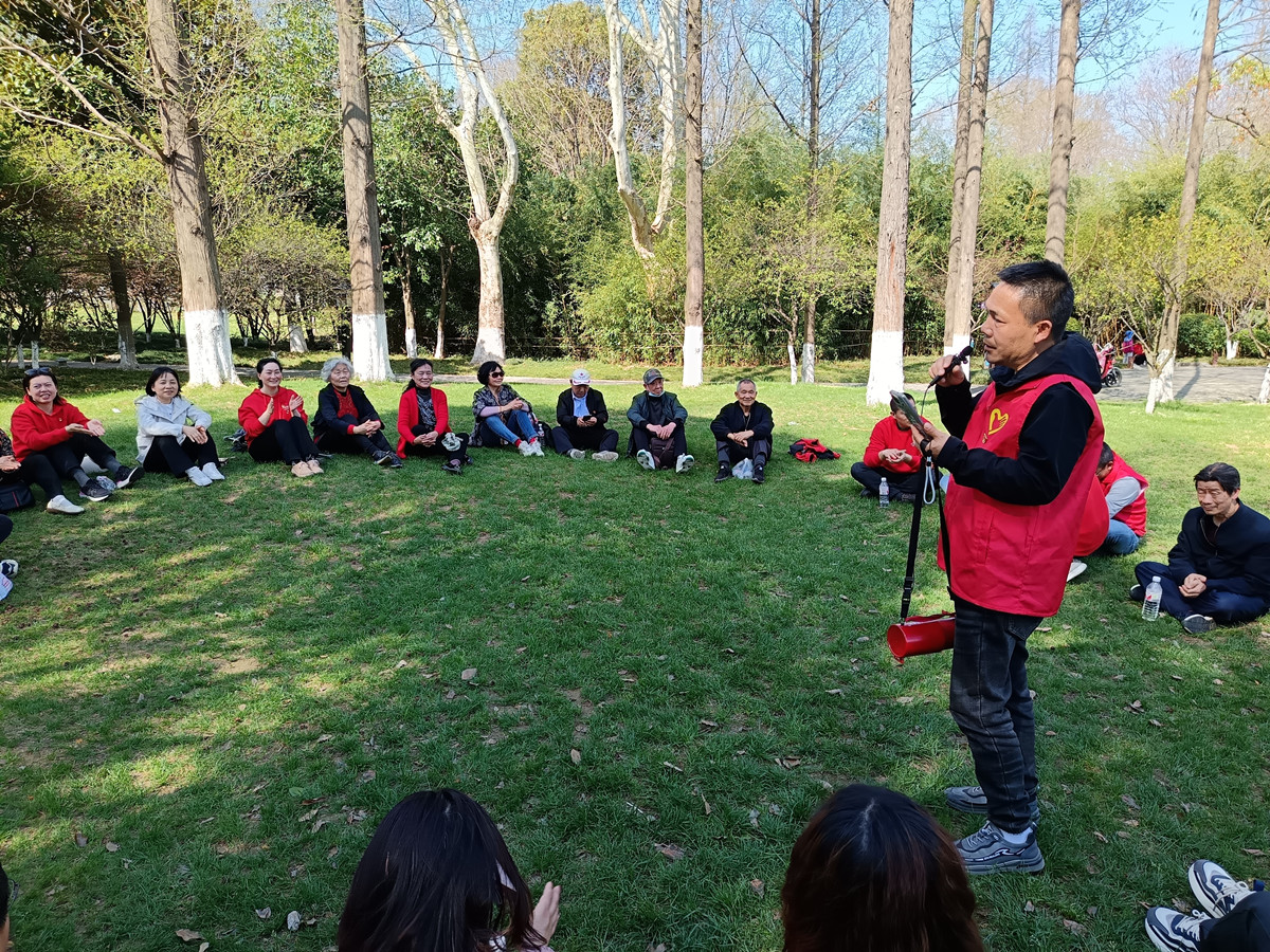觀賞完園林景觀,大家在草地圍坐成圈,傾聽老黨員們講述奮斗故事,詳細了解他們的生活和健康狀況,以幫助他們解決生活中存在的實際困難。一句句暖心的話語,一聲聲貼心的問候,讓老黨員們倍感溫暖,同時也進一步增強了黨員干部的服務(wù)宗旨意識。在互動環(huán)節(jié),老黨員們首先為大家獻上了一曲《我和我的祖國》,熟悉的旋律和歌詞,引得過往游覽的群眾紛紛加入,形成了全體大合唱。隨后黨員志愿者代表為大家?guī)砹思t歌《沒有共產(chǎn)黨就沒有新中國》,老黨員們隨著旋律吟唱,憶往昔崢嶸歲月。黨員志愿者們還為大家表演了八段錦、公雞下蛋等娛樂節(jié)目,讓老黨員們開懷大笑。