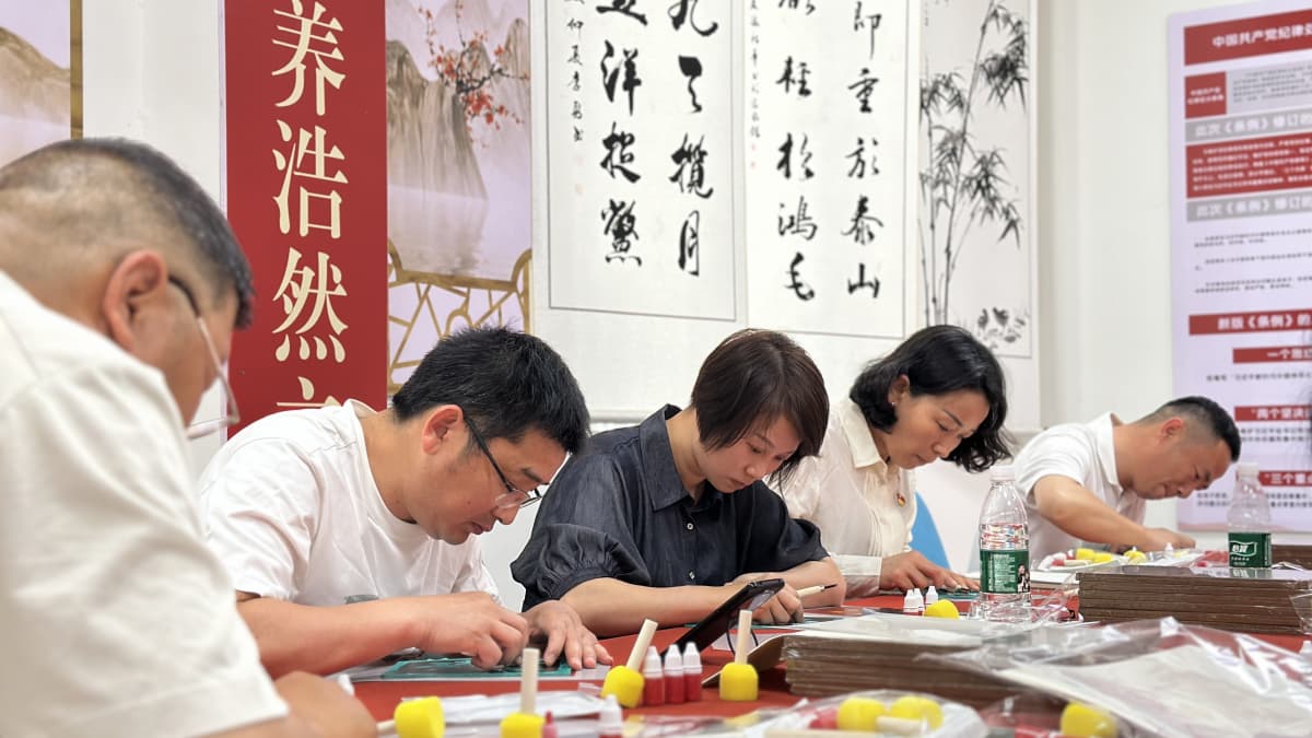 活動特別設(shè)置的廉潔拓印環(huán)節(jié),將千年非遺技藝化作生動教育載體。主持人以《楚辭》《周禮》典籍為引,溯源拓印技藝“傳文明、載正道”的文化基因,闡釋“一紙拓春秋,匠心守廉心”的深刻內(nèi)涵。黨員們凝神屏息鋪紙鐫刻,隨著木槌在“廉以修身”“儉以養(yǎng)德”等拓版上起伏,墨跡漸顯的不僅是傳統(tǒng)技藝的精妙,更映照出“黑白分明、不越雷池”的廉潔真諦。紀(jì)委書記凌敏麗強(qiáng)調(diào):“要在傳統(tǒng)技藝的慢工細(xì)作中感悟紀(jì)律規(guī)矩,讓每道拓印的紋路都成為叩擊心靈的廉潔警鐘。”