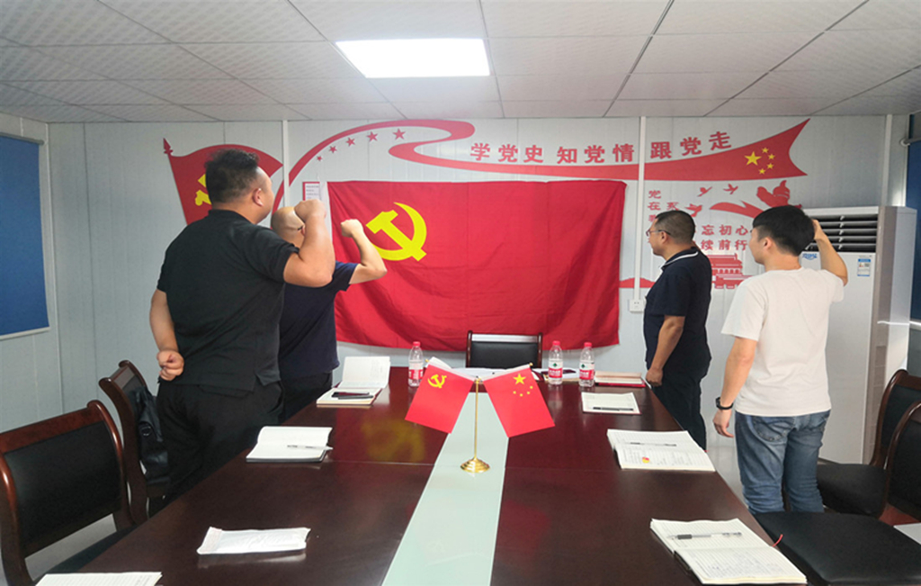 會(huì)上,楊宇同志帶領(lǐng)全體黨員重溫了入黨誓詞,傳達(dá)了《中共襄陽(yáng)市政集團(tuán)有限公司委員會(huì)關(guān)于開(kāi)展黨建示范點(diǎn)創(chuàng)建活動(dòng)實(shí)施方案》精神,動(dòng)員全體黨員要以“黨建引領(lǐng)、打造品質(zhì)工程”為抓手,緊緊圍繞著項(xiàng)目建設(shè)的中心抓好黨建工作。要讓黨旗插在工地,黨徽閃在現(xiàn)場(chǎng),充分發(fā)揮臨時(shí)黨支部在工程項(xiàng)目生產(chǎn)第一線的“旗幟”作用。深入開(kāi)展“保安全、強(qiáng)質(zhì)量、促進(jìn)度、爭(zhēng)第一”為主題的黨建活動(dòng),把黨建工作貫穿至工程項(xiàng)目各項(xiàng)工作的始終,帶領(lǐng)項(xiàng)目全體黨員干部高標(biāo)準(zhǔn)、高要求地做好各項(xiàng)工作,積極爭(zhēng)創(chuàng)黨建示范項(xiàng)目和優(yōu)質(zhì)精品工程。