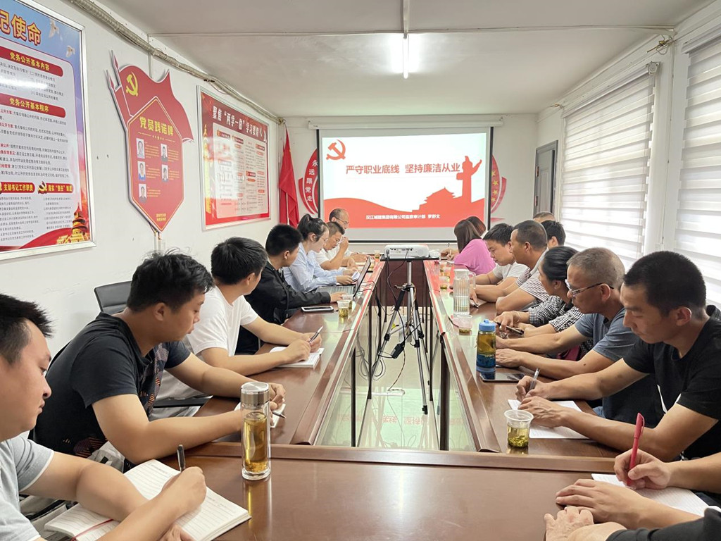 7月6日上午,漢江城建監(jiān)察審計(jì)部到襄陽(yáng)市政新材料有限公司開展廉政宣講活動(dòng),襄陽(yáng)市政新材料有限公司全體黨員、管理人員及鄂西北疫情防控基地項(xiàng)目人員共同參加了本次廉政宣講活動(dòng)。