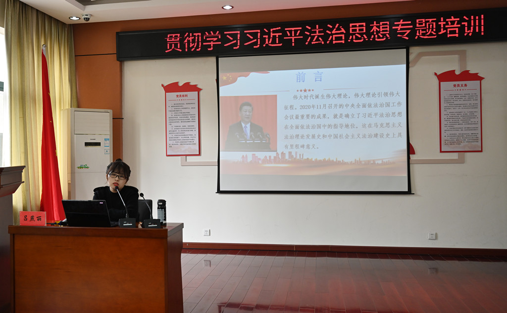 此次培訓(xùn),特邀市委黨校呂燕麗老師進(jìn)行現(xiàn)場(chǎng)授課,講課內(nèi)容重點(diǎn)圍繞習(xí)近平法治思想的科學(xué)內(nèi)涵、核心要義、貫徹落實(shí)展開,梳理了習(xí)近平法治思想形成的時(shí)間脈絡(luò)、理論脈絡(luò)和歷史脈絡(luò),聚焦“十一個(gè)堅(jiān)持”的具體內(nèi)容,對(duì)習(xí)近平法治思想進(jìn)行了全面系統(tǒng)的分析和闡釋。漢江城建要求,要以此次專題培訓(xùn)為契機(jī),進(jìn)一步學(xué)深、悟透習(xí)近平法治思想,深入推進(jìn)新時(shí)代漢江城建法治建設(shè),不斷增強(qiáng)政治自覺,堅(jiān)定法治信仰;不斷增強(qiáng)思想自覺,樹牢法治思維;不斷增強(qiáng)行動(dòng)自覺,提升法治水平。