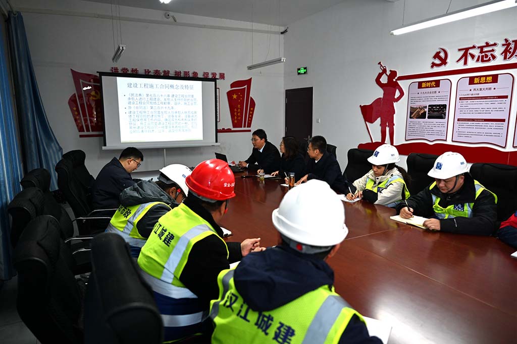 為進(jìn)一步加強(qiáng)漢江城建法治建設(shè),培育企業(yè)法治文化,大力加強(qiáng)憲法學(xué)習(xí)宣傳,弘揚(yáng)憲法精神,讓?xiě)椃ㄉ钊肴诵摹?2月2日,漢江城建在襄城區(qū)鄉(xiāng)村振興配套道路項(xiàng)目部組織開(kāi)展了“以習(xí)近平法治思想為指引 堅(jiān)定不移走中國(guó)特色社會(huì)主義法治道路”為主題的國(guó)家憲法日暨憲法宣傳周系列活動(dòng)。