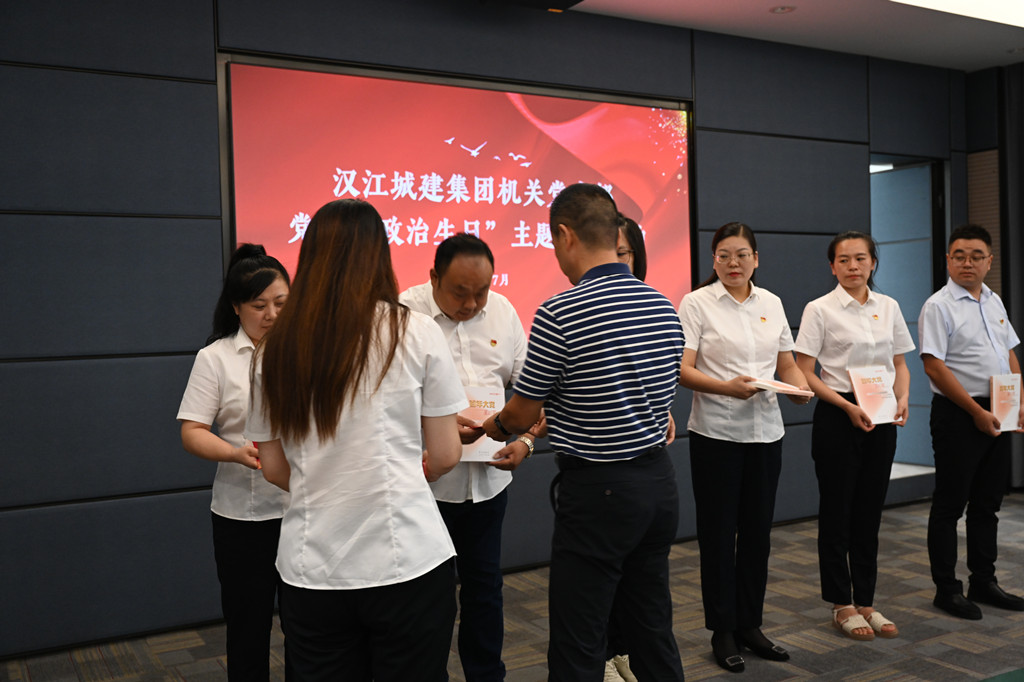 在實踐鍛煉環(huán)節(jié),黨支部組織7月份加入中國共產(chǎn)黨的黨員同志集體過“政治生日”。黨委副書記、副董事長、總經(jīng)理蔡軍分別向6名過“政治生日”的黨員同志贈送了“政治生日”賀卡,以及黨史書籍等生日禮物。沈玲莉、陳輝、丁萌3名同志作為黨員代表,圍繞“三憶三問三思”發(fā)表政治生日感言,從個人成長、工作經(jīng)歷、對黨性的感悟等方面,分享了自己入黨的心路歷程,用樸素的語言、真摯的情感表達(dá)了愛黨愛國的熱情,表示將堅定理想信念,以此次政治生日為新起點,繼續(xù)用實際行動銘記入黨初心,踐行全心全意為人民服務(wù)的使命。